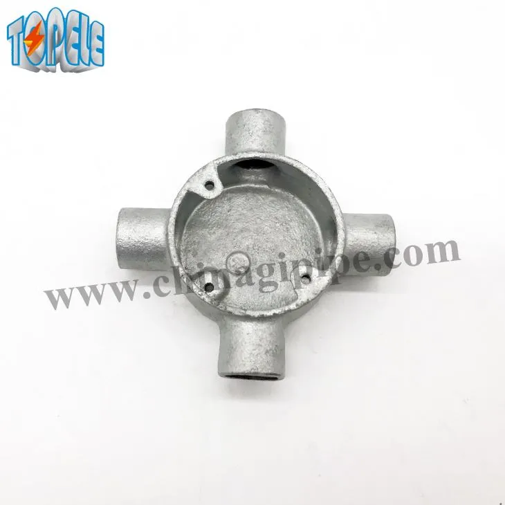 TOPELE cung cấp các hộp tròn thông minh BS Mallable Tee Way là hộp có cấu trúc hình tròn. Loại này là "Đường giao nhau", có nhiều nhất bốn thiết bị đầu cuối nhô ra từ nó. Các kích cỡ khác nhau mà các hộp tròn dễ uốn có sẵn là 20 mm, 25 mm. Được thiết kế tùy chỉnh, các hộp tròn dễ uốn thường có sẵn trong các lớp hoàn thiện mạ kẽm&mạ điện nhúng đen.